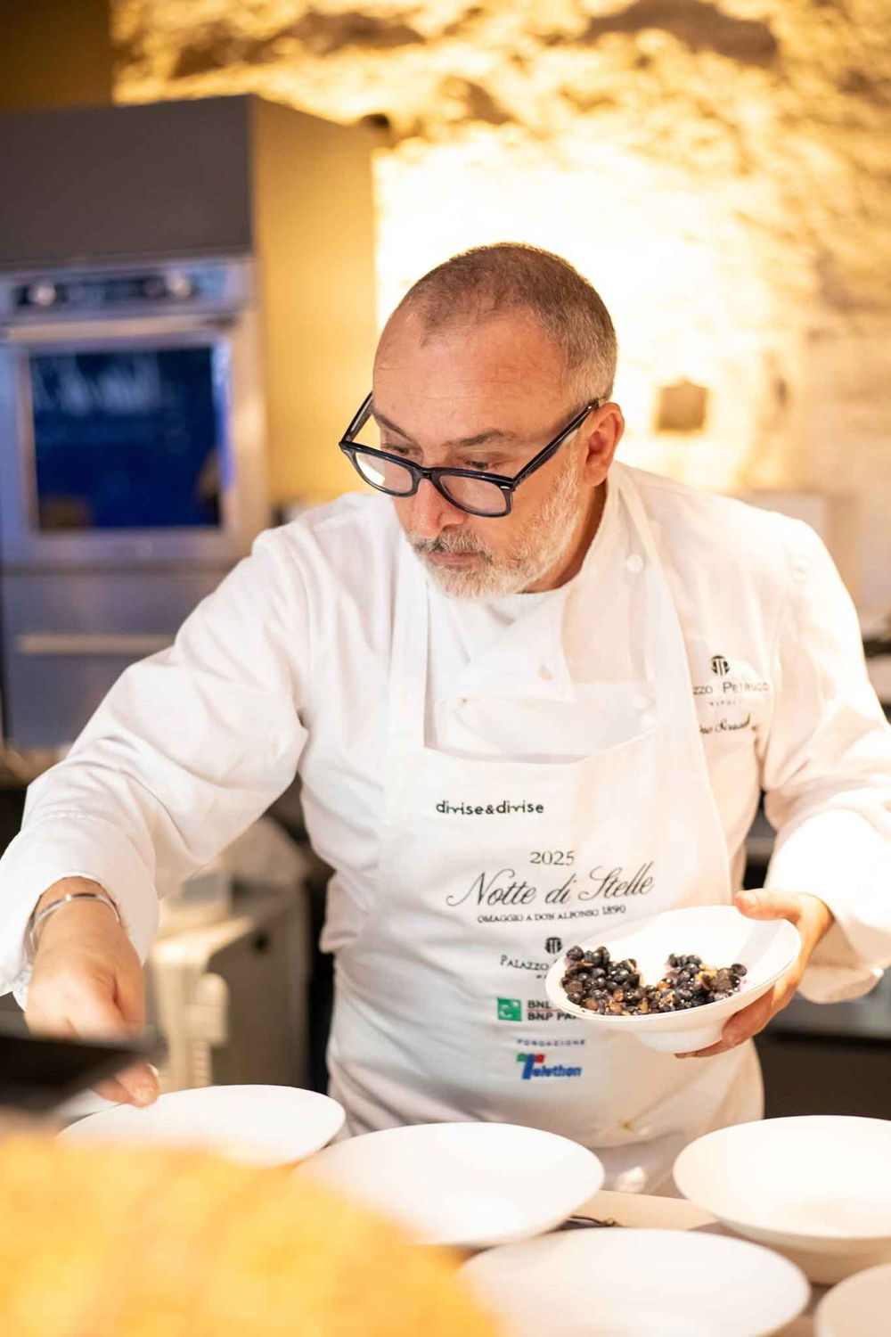 Notte di Stelle quest’anno ha voluto rendere omaggio alla storia del ristorante della Costiera Sorrentina che in 50 anni ha saputo essere faro di riferimento per la ristorazione in Campania e non solo. Tante idee della gastronomia contemporanea si devono proprio ad Alfonso Iaccarino. Che prima di altri ha saputo valorizzare il territorio, la filiera diretta con la creazione dell’orto delle Peracciole. E la sostenibilità in cucina e in tutta la struttura.