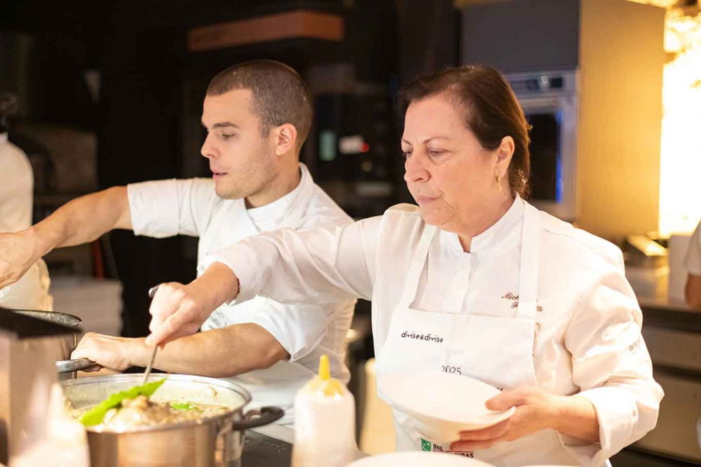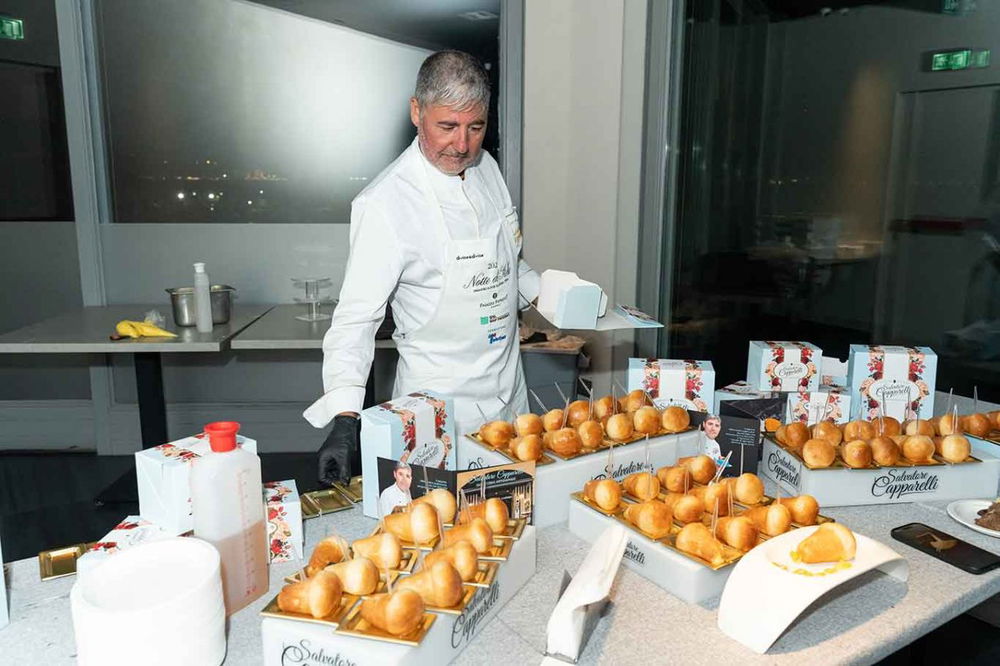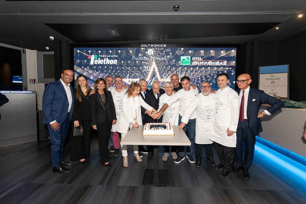 L’amico fraterno di Alfonso Iaccarino lo ha portato in dote per questa serata Omaggio al Don Alfonso 1890. Che ha visto alle postazioni 20 tra chef, pizzaioli, pasticcieri e gelatieri coordinati da Lino Scarallo. Soddisfazione e gratificazione non solo per gli organizzatori della manifestazione di beneficenza che con Notte di Stelle supportano la ricerca della Fondazione Telethon. Ma anche per gli oltre 300 benefattori che hanno affollato i tre piani del palazzo gastronomico di Posillipo. E per i 24 sponsor che hanno offerto il loro prezioso contributo.