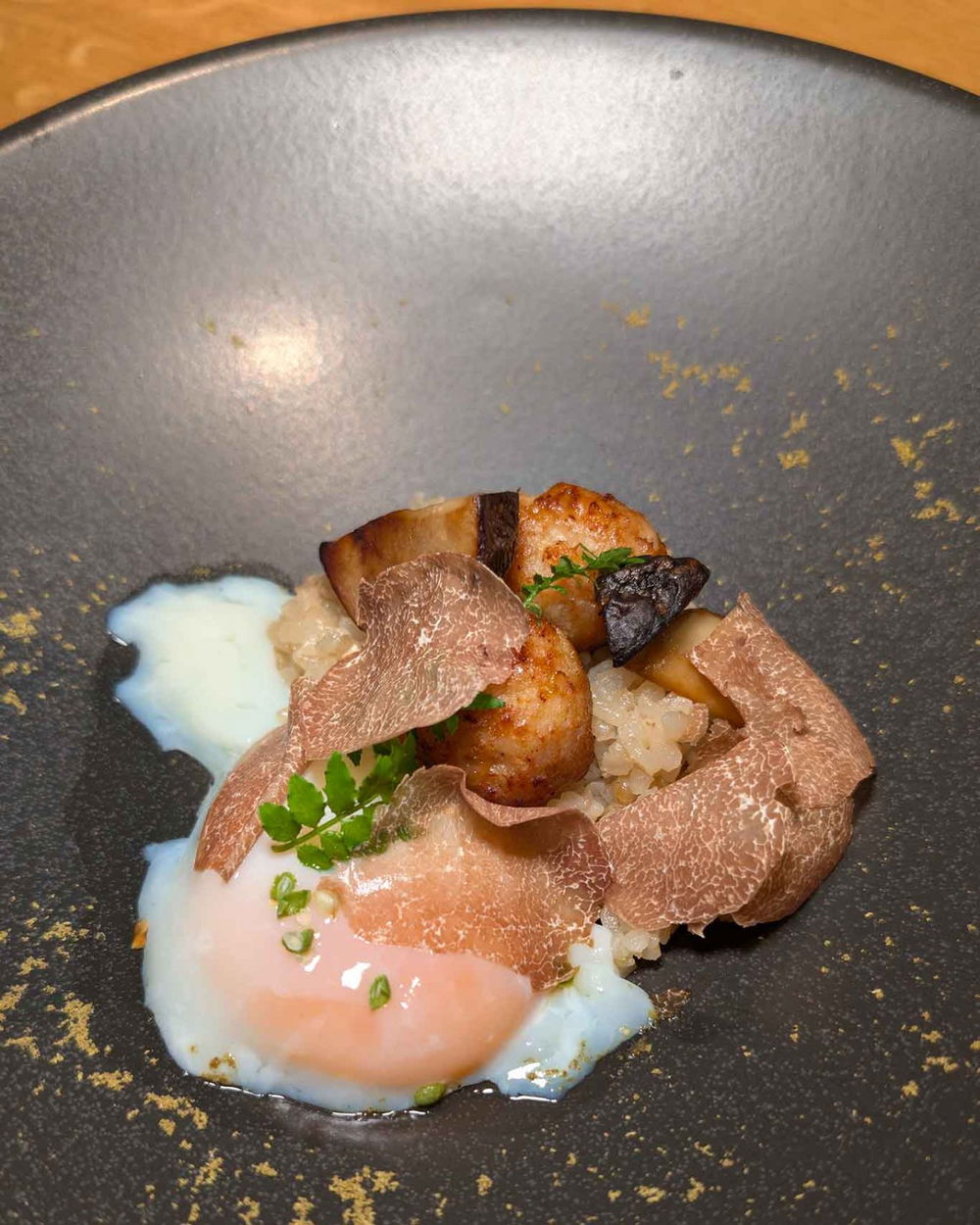 Ma il colpo da maestro è il Chicken Tsukune. Una polpetta di pollo grigliata e servita su un letto di riso cotto con il calore della brace, mantecato con porcini, castagne e impreziosito dal tartufo bianco e un uovo poché. Un ponte perfetto tra due culture gastronomiche.