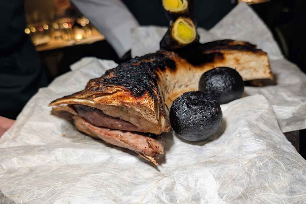 Lo dimostra con il Wood Fire Tuna Collar, dove sfida il cliché del giapponese = crudo. E griglia l’intero collo del tonno, servito con porri, caviale, e in aggiunta la freschezza agrumata dello yuzu e la nota balsamica dello shiso.