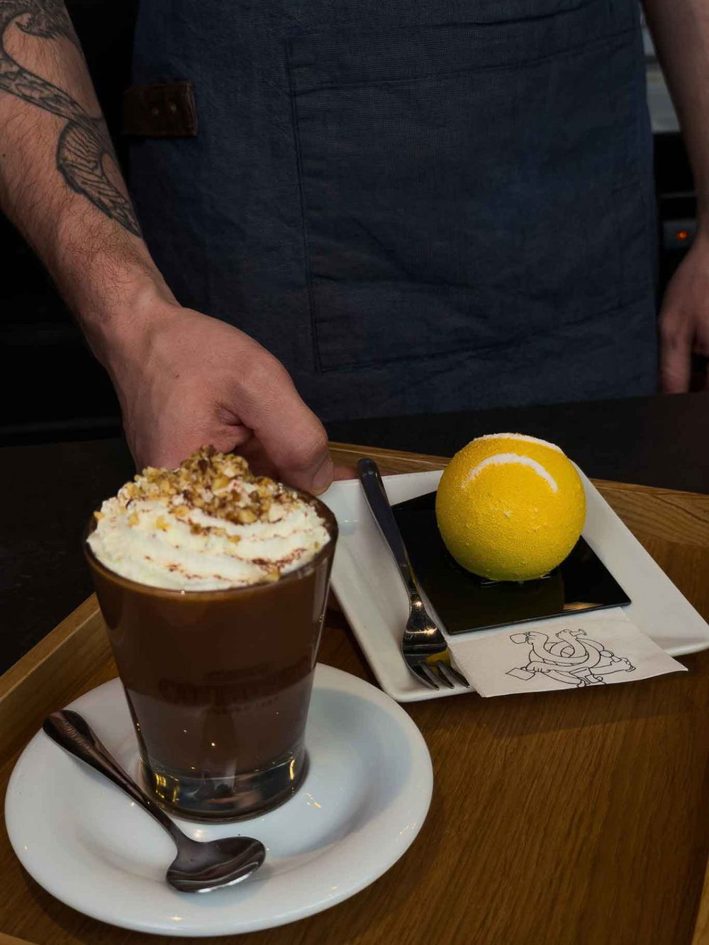 Nei Vastè Bistrò a Torino e nei Costadoro Social Coffe trovate la Chocolate Ball a forma di pallina da tennis. La sfera ha una pelle ruvida come una vera pallina da tennis, mentre all’interno c’è un pan di Spagna con panna vellutata e un cuore al passion fruit e yuzu. È l’edizione 2025 per gli ATP Finals che replica in gusto diverso quella dell’anno scorso che era una sfera di burro di cacao e cioccolato bianco, ripiena di ganache al cioccolato fondente, caramello di yuzu e frutto della passione, con praline alla nocciola e brownies al cioccolato.