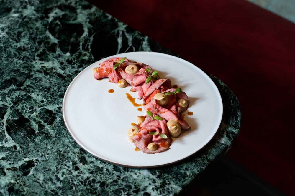 Il menu degustazione Guarini a Torino parte con il vitello tonnato seguito dai tajarin fatti in casa con ragù di faraona. Poi guancia di manzo brasata al vermouth e per chiudere il bonet Guarini a base di amaretti e cioccolato con la cialda che richiama la struttura della cupola più celebre di Guarino Guarini, quella che custodisce la Sacra Sindone.