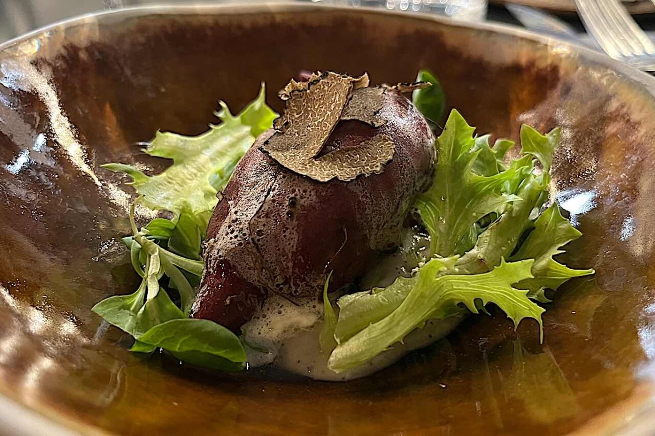 A chiudere il percorso due pietanze di carne Anatra, funghi porcini e aceto fermentato con funghi shitake e Animelle cacio e pepe (le trovate in carta a 18 euro).