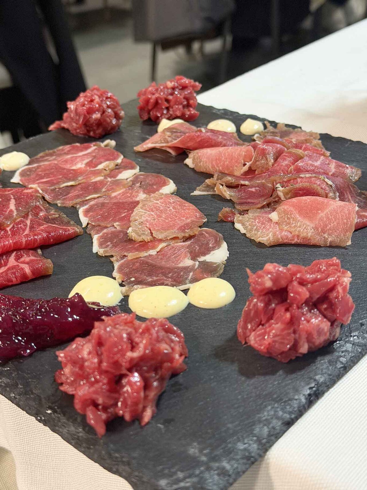 Il tagliere dei salumi (23 euro per 2 persone) è un quadro caravaggesco: speck di scottona, pancetta di vacca, pancetta di pecora, finocchiona, salame di asina, salame di pecora, chorizo. Materia viva, identitaria, lavorata con rigore e sensibilità.