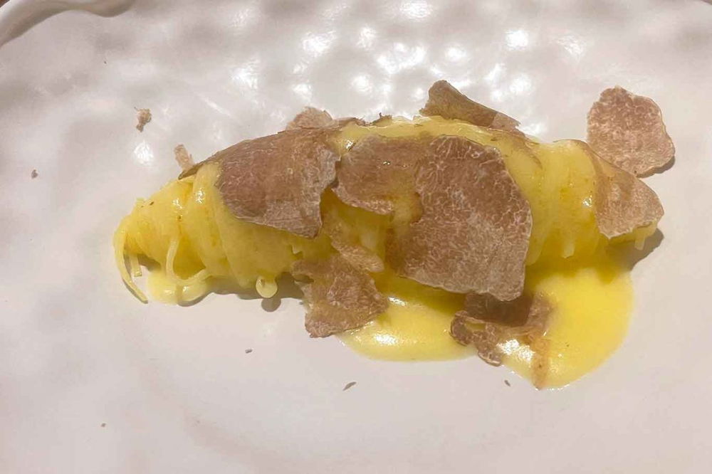 A seguire gli ottimi Tagliolini al tartufo (in questo caso bianco a 38 euro). Pasta fatta in casa, giusta cottura e abbinamento classico che non tradisce.