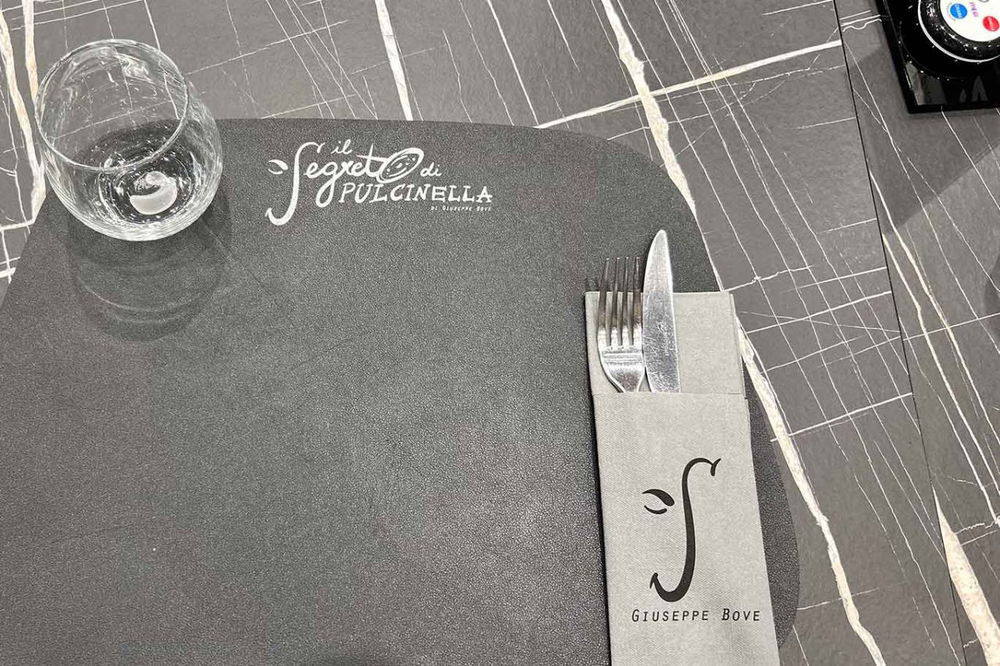 Da poco più di due anni Giuseppe ha inaugurato la nuova sede de Il Segreto di Pulcinella. Un grande parcheggio davanti al locale è già un punto a favore. L’ingresso crea un ampio disimpegno coperto e riscaldato (quando serve) per le attese. L’entrata in sala vede Antonella, moglie di Giuseppe, ad accogliere. Gentile, garbata e sorridente gestisce la sala in modo preciso. Veniamo accompagnati al tavolo e non resta che ordinare!