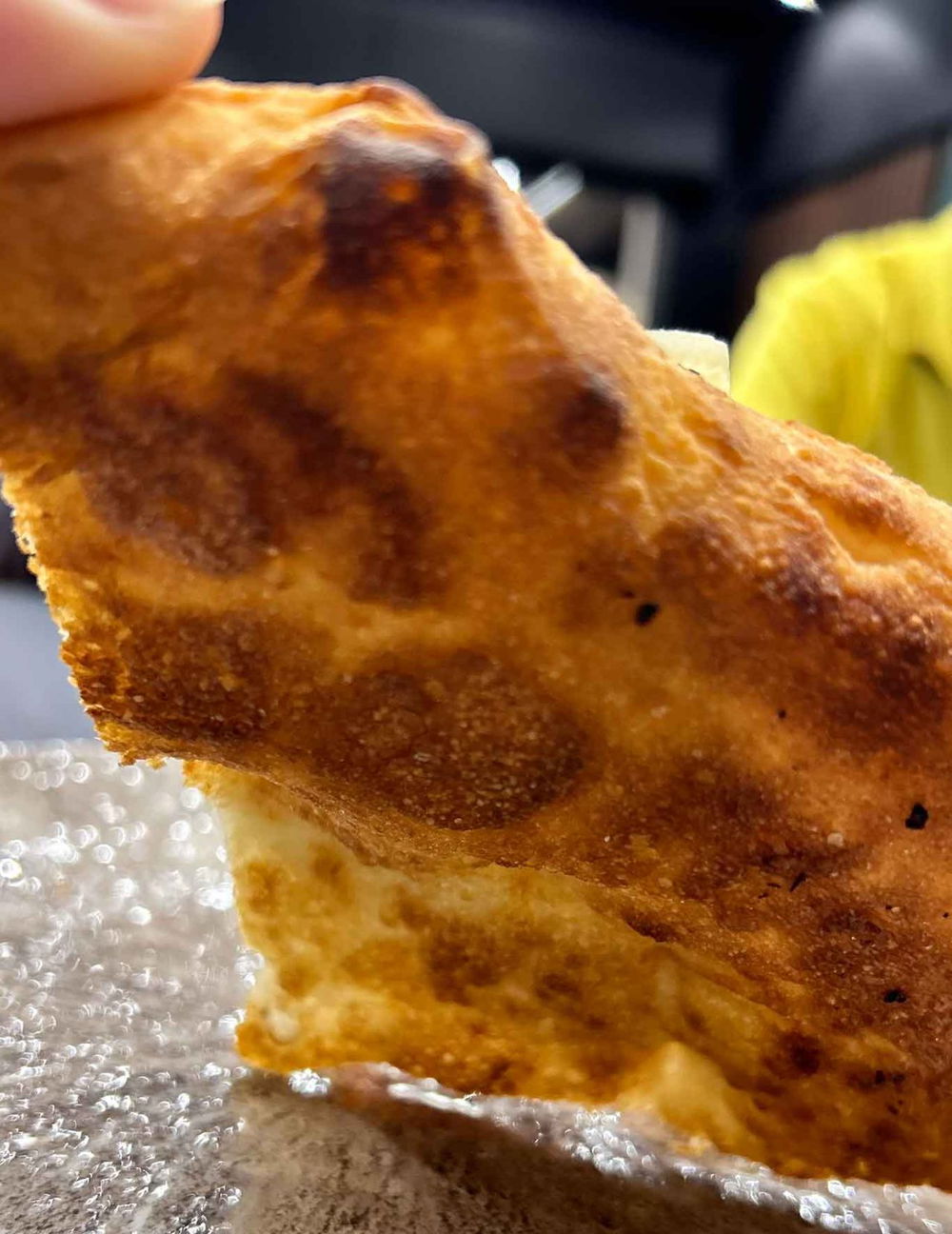 Vespignani sceglie di servirci la sua versione di Fritta come terza ed ultima pizza. Un panetto in doppia cottura, prima fritta e poi passata al forno. La particolarità è nella forma: è infatti rettangolare. Ricordate la libera scelta di Vittorio alle qualifiche? Era la sua versione di Provola e pepe (Affumicata). Ebbene parliamo della stessa “base” per questa Immortazza. Stavolta però la nota crunchy è meno impattante alla vista in quanto il panetto è coperto dalla mortadella. Il profumo è proprio quello della mortadella appena affettata che si mescola al limone fresco.