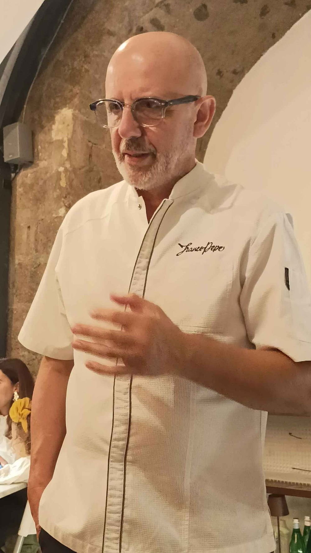 Pepe ci dice che l’idea di questa “rivisitazione” è nata pensando ad uno dei piatti da proporre ad un evento che si terrà nei prossimi giorni ad Udine. Sapevamo dai social che Franco parteciperà ad Ein Prosit, la “festa della gastronomia” del Tarvisiano che da tempo lo vede tra i protagonisti. Dunque, è stato facile capire. Parliamo di un evento che unisce la cultura enogastronomica internazionale, la tradizione del vino e la conoscenza di materie prime nella cucina attraverso degustazioni, masterclass, laboratori ed anche cene. Ein Prosit 2025 ha un vasto programma di eventi (oltre 140). Franco Pepe sarà presente il 16 ottobre al Ristorante Vitello D’Oro, a Udine, insieme allo chef Amaury Bouhours (Restaurant Le Meurice Alain Ducasse, Francia – 2 stelle Michelin). L’evento si chiama “La Tour Eiffel può lievitare?” e per l’occasione Franco ha ideato questo cono che potrebbe tranquillamente essere battezzato Con-taminazione.