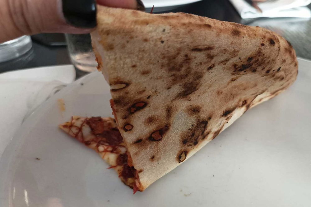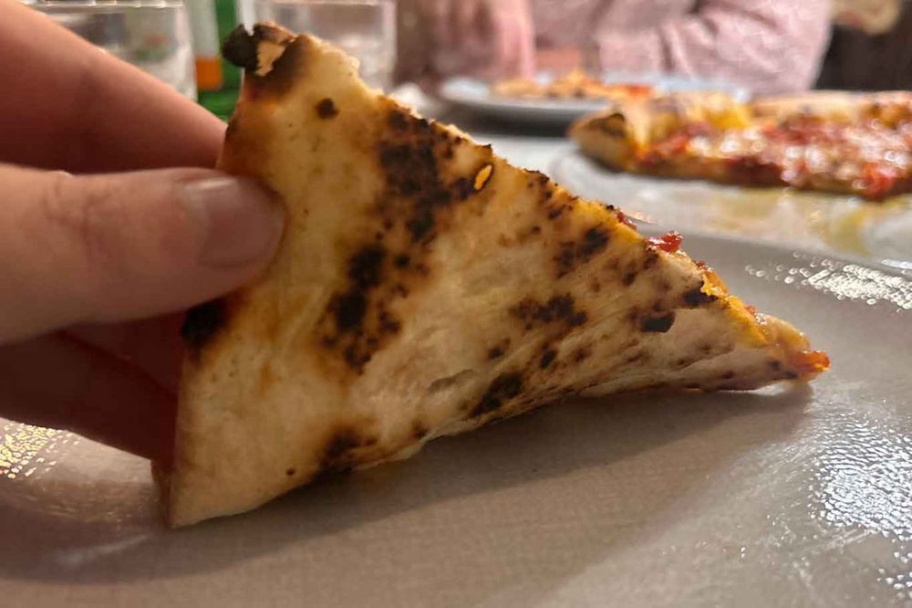 Seppur la pizza perderebbe qualche voto nell’assaggio con la maionese, scegliamo di non penalizzarla proprio perché va dato atto a Ruotolo di averla servita a parte invitandoci all’assaggio per curiosità. Se invece ce l’avesse servita direttamente con la salsa, sarebbero cambiate le cose. Comprendiamo la voglia di giocare con consistenze e gusti personali, ma apprezziamo anche la capacità di non compromettere il prodotto autentico.