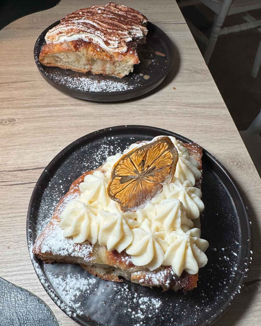 E ovviamente il crunch lo ritroviamo anche nei due tranci di pizze dolci tratte dalla ricca sezione dolci. Crosticina al caramello per il tiramisù rifinito al tavolo con il bricchetto del cappuccino. Due dolci molto golosi con le creme sempre fatte in casa. Qui alla Bottega Bruner non entra nulla di preconfezionato e anche voi non potrete che esserne felici.