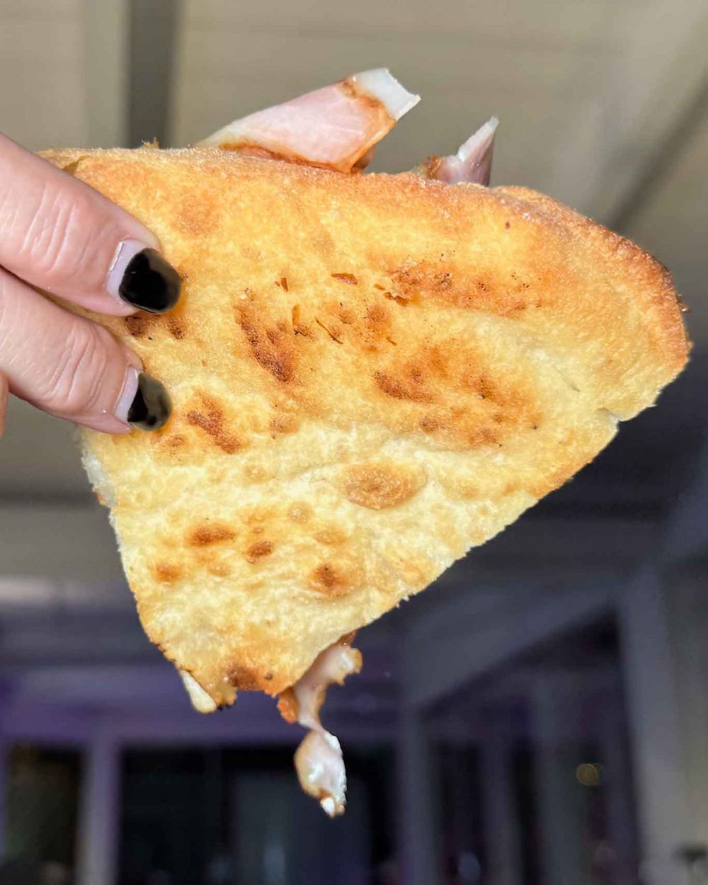 E anche il palato va in sintonia con gli occhi per il crunch di questa pizza cotta senza sbavature che si esalta per il tradizionale ingrediente del maiale nella pizza fritta qui in forma elegante. Incisiva, perde qualche punto sulla affumicatura non così esplosiva come ci si sarebbe aspettato dalla preparazione.
