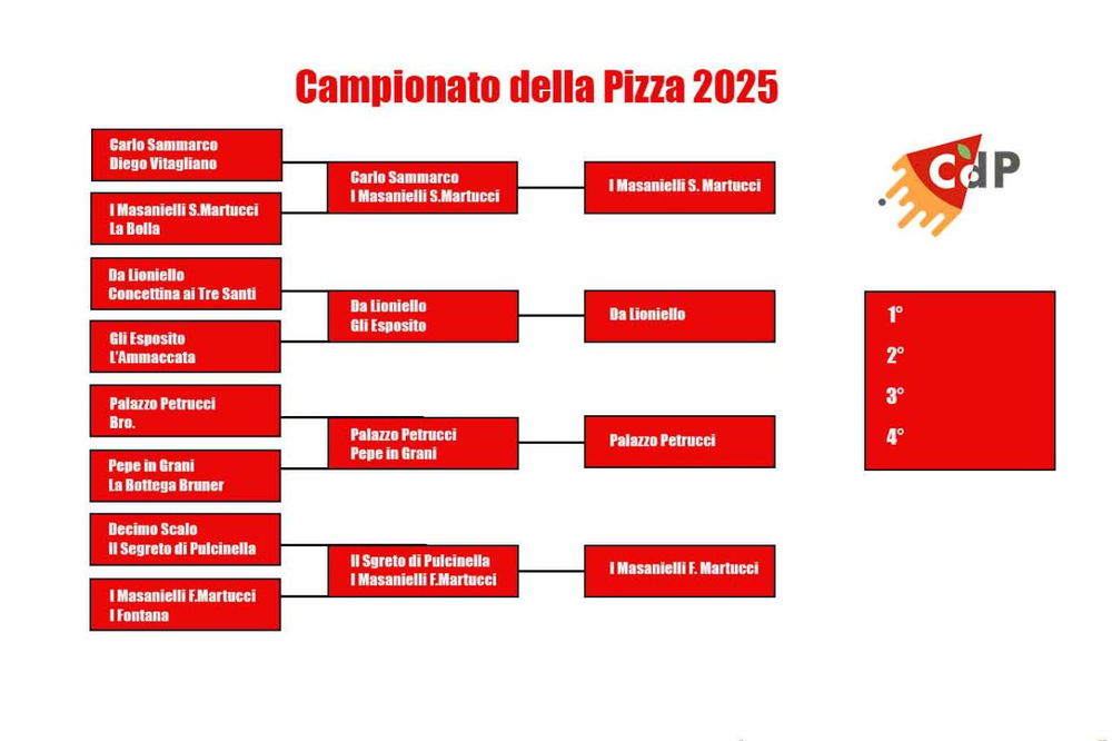 La finalissima dunque già dichiara la superiorità di Caserta che dispone di 2 pizzerie su una sola pizzeria di Napoli a contendere il primo posto di un Campionato che ha visto i giudici impegnati per tutto il 2025.
