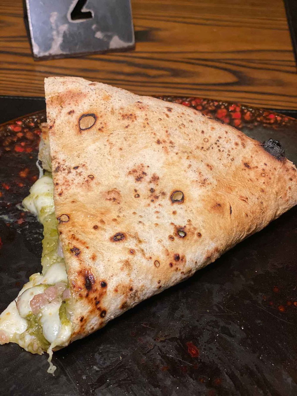 Colpisce subito l’aspetto concettuale della questione. Per Francesco, la Diavola — o pizza piccante che dir si voglia — è una stagionale, come un rito che torna solo quando le temperature lo permettono. Fortuna che becchiamo la sua idea di spicy di ritorno al menu al suo primo nuovo giorno. E ancora storia, ancora pesca miracolosa dalla sua personale galleria dei pezzi forti. Camouflage, un’altra icona. Una realizzazione vanitosa, che trova la propria bellezza negli incastri cromatici luminosi, nella regia grafica che Francesco domina istintivamente.