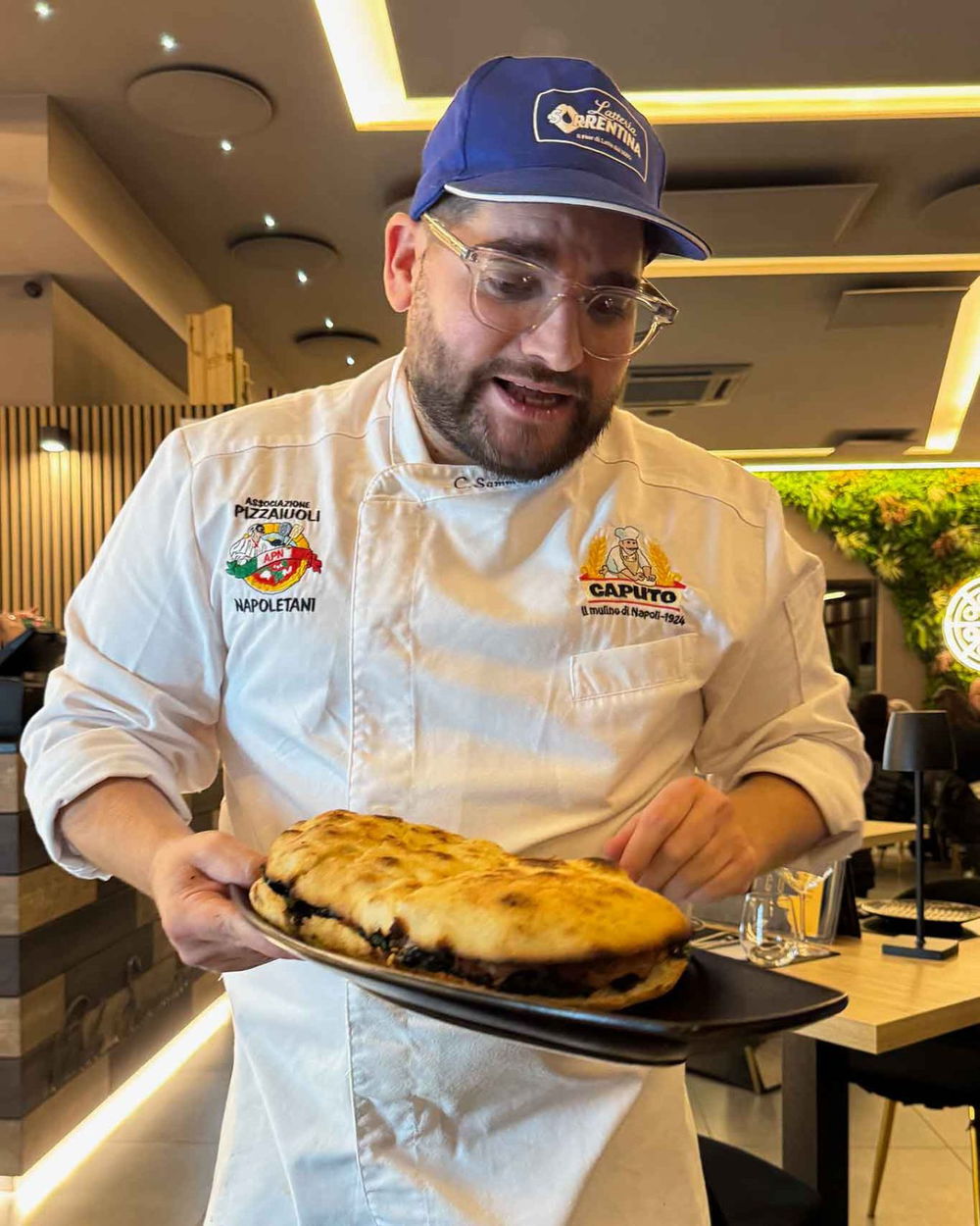 Sammarco è il vincitore del Campionato 2024 e come gli altri finalisti ha potuto saltare la fase delle qualifiche. Il suo percorso parte dalla fase degli Ottavi e dunque con due pizze fisse quali Marinara e Fritta. Sammarco si gioca la sua Antica Napoli, una pizza significativa al punto da portarla anche nella finale della scorsa stagione. A seguire, la pizza fritta è una doppia cottura (quindi prima fritta e poi asciugata e resa croccante in forno elettrico) che ha come topping una emulsione di tre pomodori diversi che sanno conferire corposità e profondità, una ricetta ispirata a quella dei più famosi paccheri del ristorante tre stelle Michelin “Da Vittorio”.