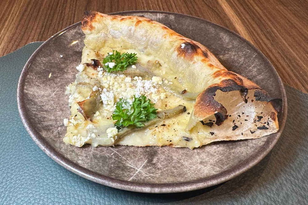 C’è poco da dire per una ricetta classica ben eseguita senza voli pindarici ma che conferma un salto in avanti rispetto ad altre esecuzioni del recente passato. Sembra quasi che il rifacimento della pizzeria abbia fatto bene anche al contenuto, cioè la pizza. Merito ovviamente anche di un impasto che rende vigoroso il morso senza spegnersi ma accompagnando con garbo la farcitura.