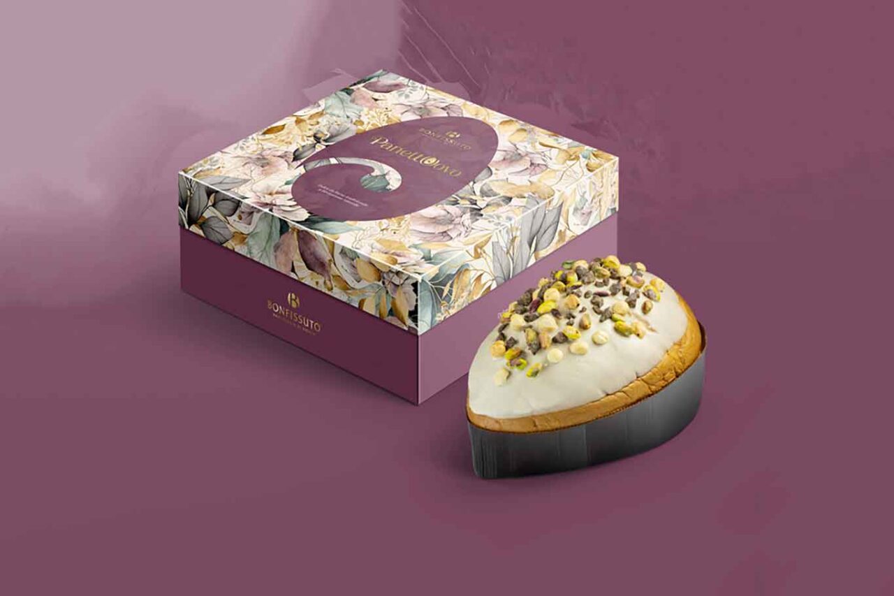 Panettuovo è il dolce pasquale di Bonfissuto che ha la copertura di cioccolato bianco e pistacchi interi. Nella confezione sono incluse tre creme da spalmare. Una alla nocciola, una al cioccolato di Modica e una a sorpresa.