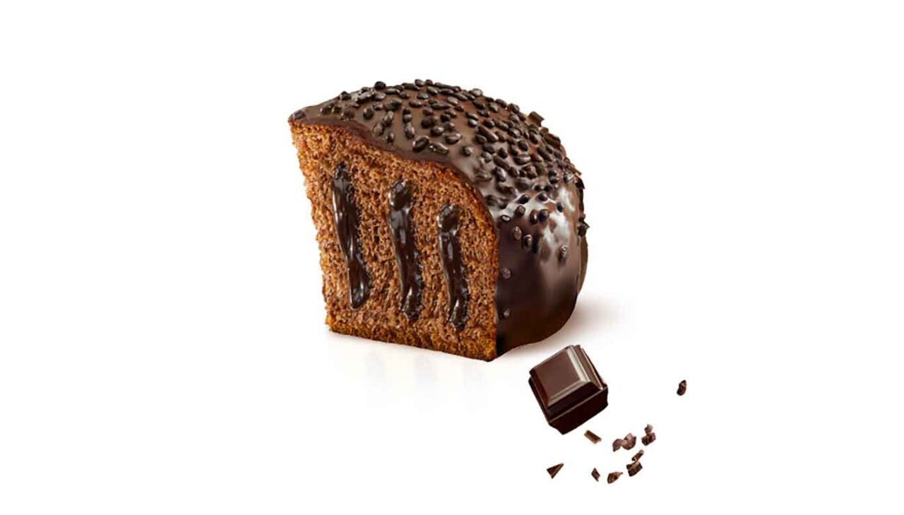 Per restare alla forma e alla consistenza della Colomba pasquale, l’altra novità è la Colomba Mora Farcita con impasto al cacao arricchito da gocce di cioccolato e da una cremosa farcitura al cioccolato (formato 600 grammi).