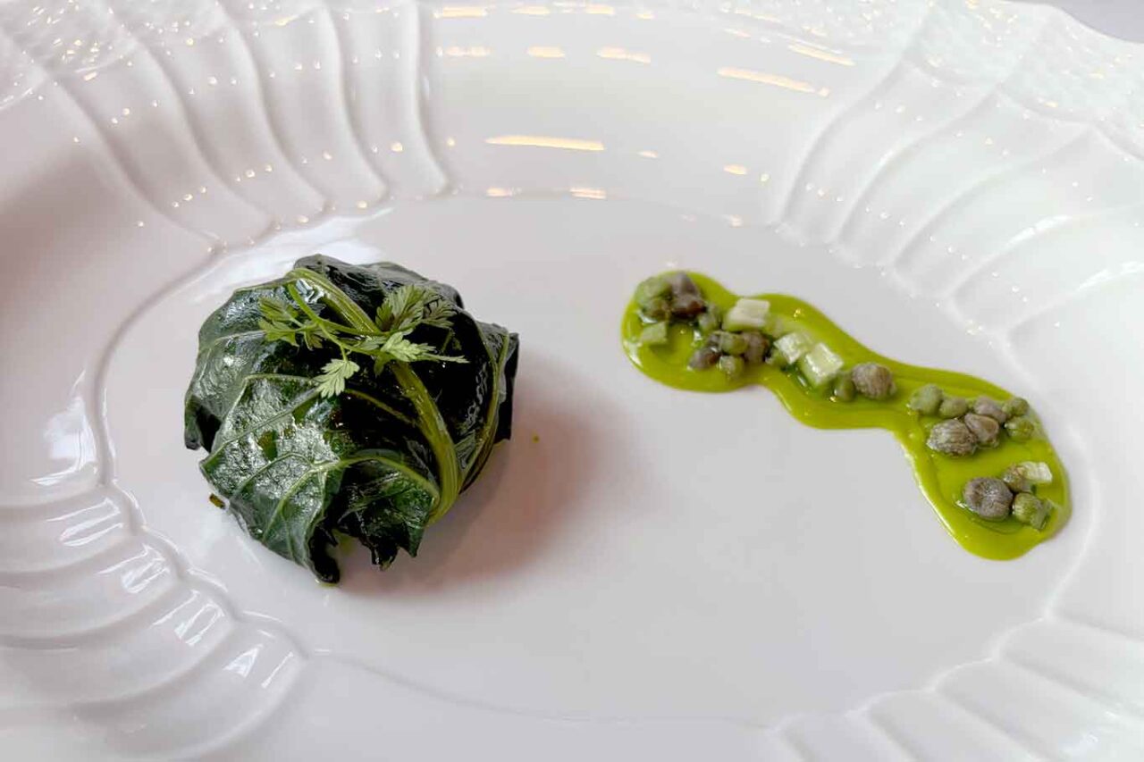 E poi Capù di Biete, cioè un fagotto o di coste di bietole, con broccoli, curry verde, combawa.
