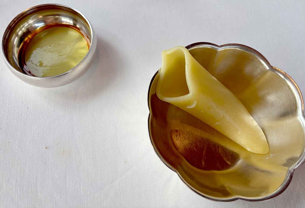 Poi arriva ora uno dei piatti più citati e ricordati della cucina di Riccardo Camanini al Lido 84. Spaghettone, burro e lievito di birra. Il menù recita che questo piatto “È stato esposto al Museum of Modern Art di San Francisco”. Non aggiungerei altro.
