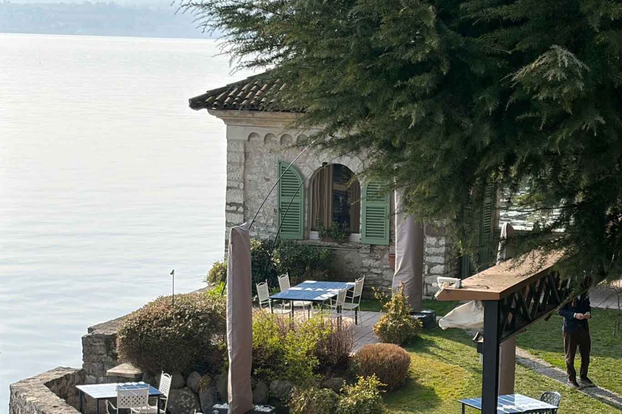 È sempre una gioia sedersi a questa tavola nella veranda sul lago, con i germani e i cormorani che ti passeggiano e nuotano davanti. Con un meraviglioso motoscafo Riva in bella vista, contornati da un giardino fatato.