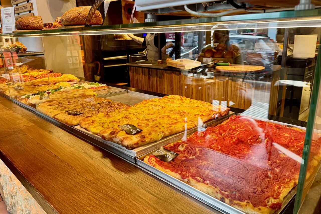 All’interno, moderno ed essenziale, è il bancone dei lievitati e delle mono porzioni, ancor più di quello delle pizze al taglio, a conquistare.