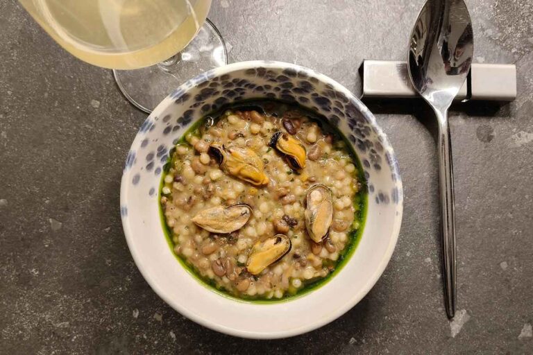 Oltre al broccolo siciliano, il piatto che più ci conquista è la fregola sarda con scapece di cozze, proposta in menù con la variante di carne, ragù di salsiccia di fegato e finocchietto a 16 euro.
