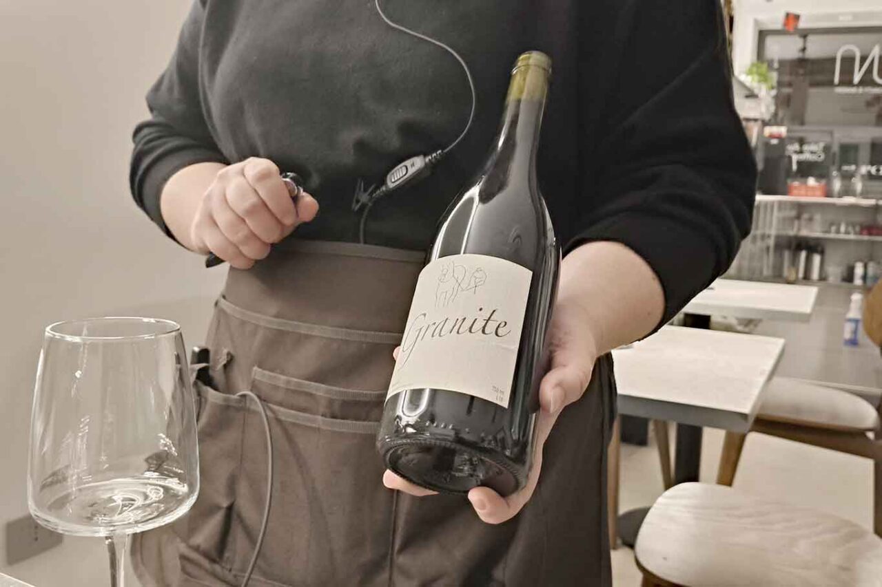 Qui beviamo Granite, un classico Beaujolais, della cantina di Michel Guignier: come zona nei dintorni di Lione, 100% Gamay. L’ambito di produzione è naturale, il vino è poco filtrato e si sente la frutta rossa perché quella è la nota costante.