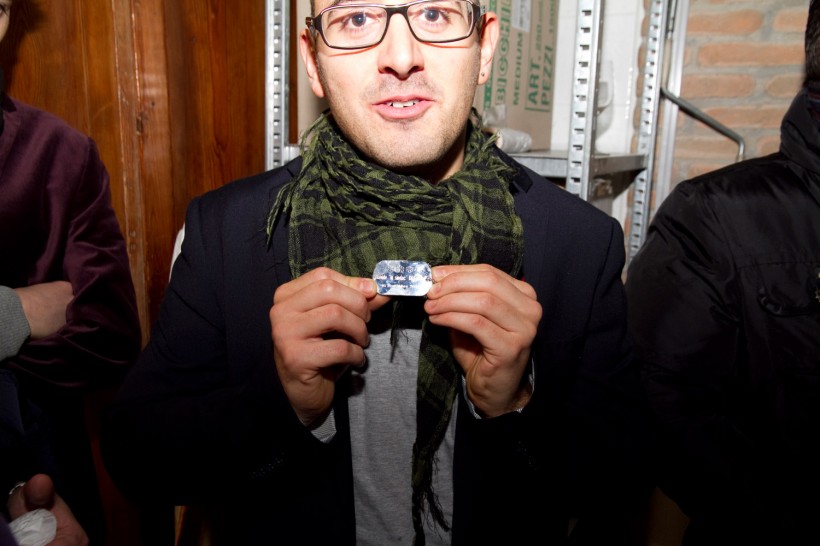 L’oggetto feticistico della serata è stato subito individuato: la targhetta militare dell’Osteria Francescana con le 3 stelle e il nome del combattente di cucina. Quella di Beppe Palmieri è stata subito trafugata.