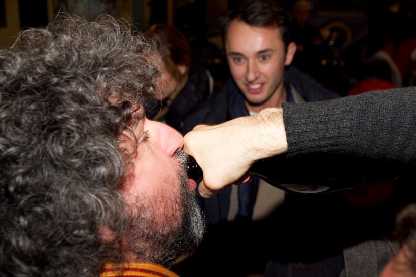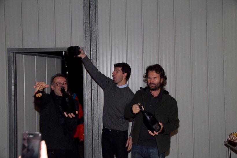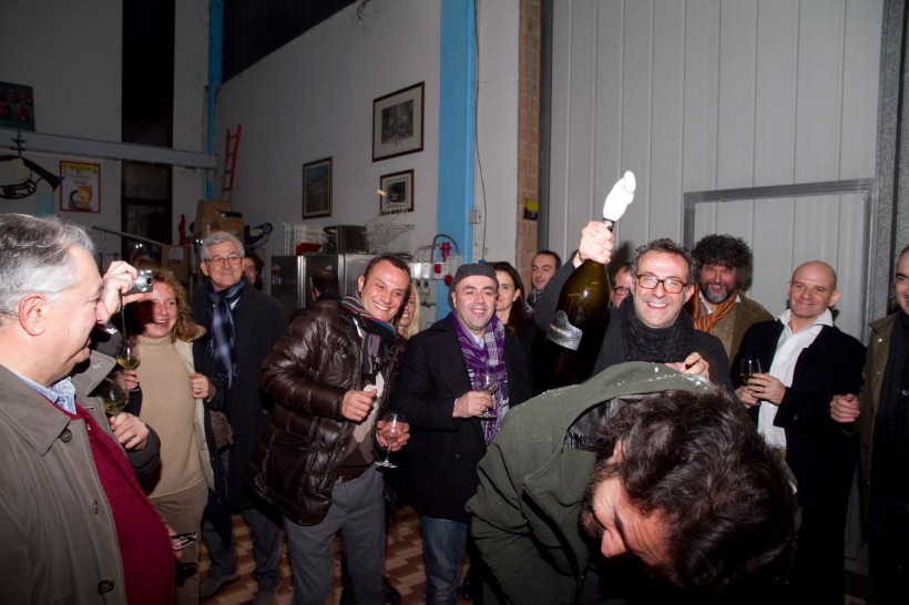 Il rito non poteva che essere quello dello champagne in una lotta serrata da podio di Gran Premio. Innaffiati tutti e tutto. Anche la cacio e pepe di Marco Bottega dell’Aminta. Sì, perchè sono venuti da tutt’Italia per salutare e festeggiare Massimo Bottura.