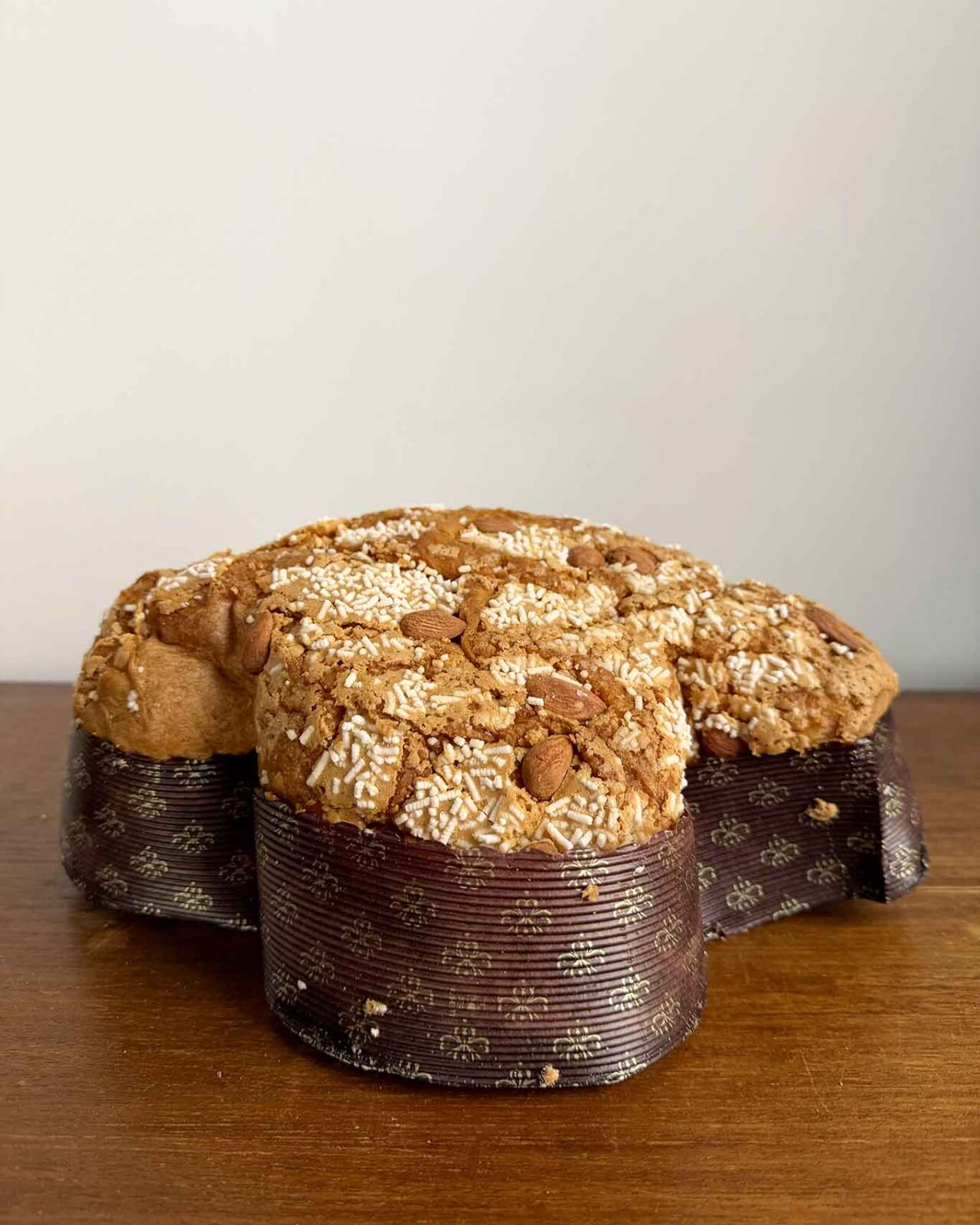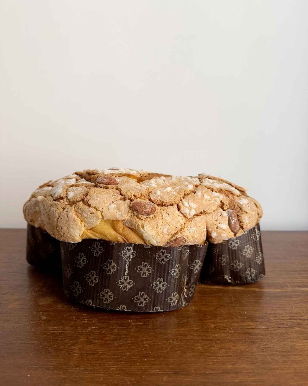 La lavorazione è dichiaratamente artigianale, affidata al lievito madre e a una lenta lievitazione superiore alle 36 ore. Struttura coerente e ben organizzata. Materie prime selezionate — burro, uova, scorza d’arancia candita, aroma naturale di vaniglia — completano un impianto essenziale, privo di conservanti, emulsionanti e coloranti.