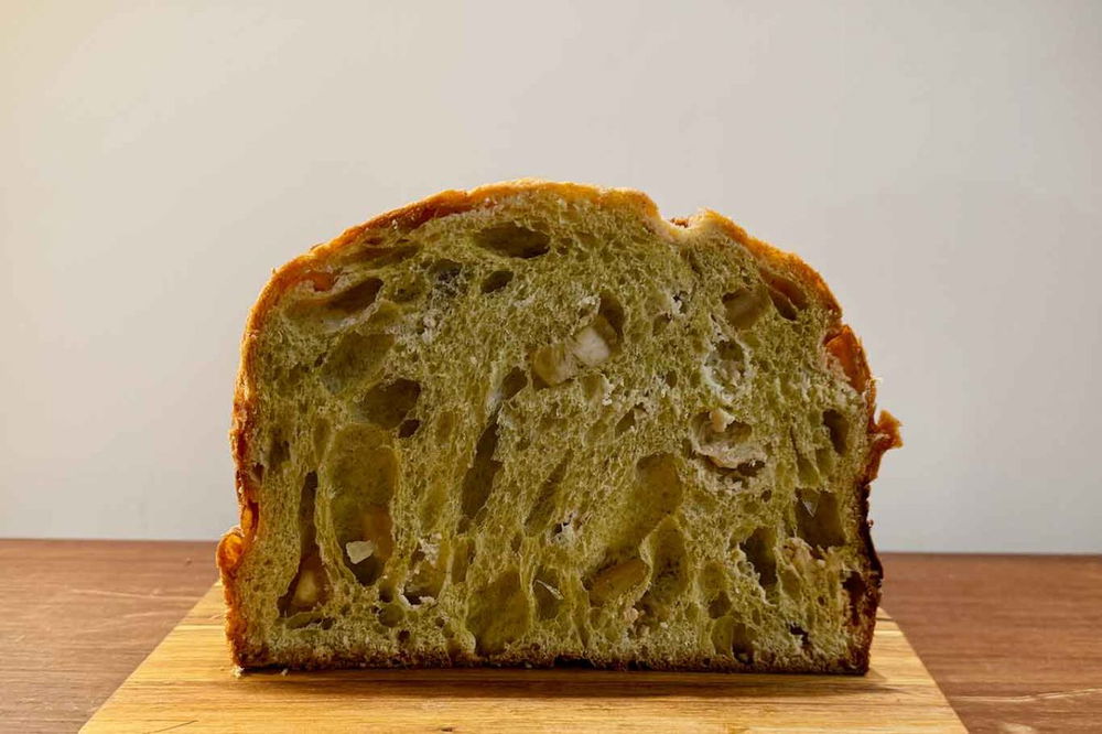 5° nella classifica 2024 con fichi noci e cannella, quest’anno migliora di una posizione la pasticceria Pepe grazie al creativo caffè, albicocca e cioccolato bianco. Confessiamolo subito: avevamo un po’ sorriso alla vista della glassa con cioccolato bianco e chicchi di caffè che sembrava uscita da un disegno di bambini. Ma poi la sferzata dell’aroma di caffè e soprattutto il morso che manderà in estasi gli amanti del caffè. Wow che capacità di tenere a bada il caffè senza entrare nel mondo dello zuccherato e regalando un gusto rotondo, piacione che invita ad un’altra fetta. La struttura risente un po’ di una leggera pesantezza (scusateci per l’ossimoro), ma sembra caratteristica comune ai lievitati che hanno come ingrediente il caffè. Poco presente, invece, l’albicocca.