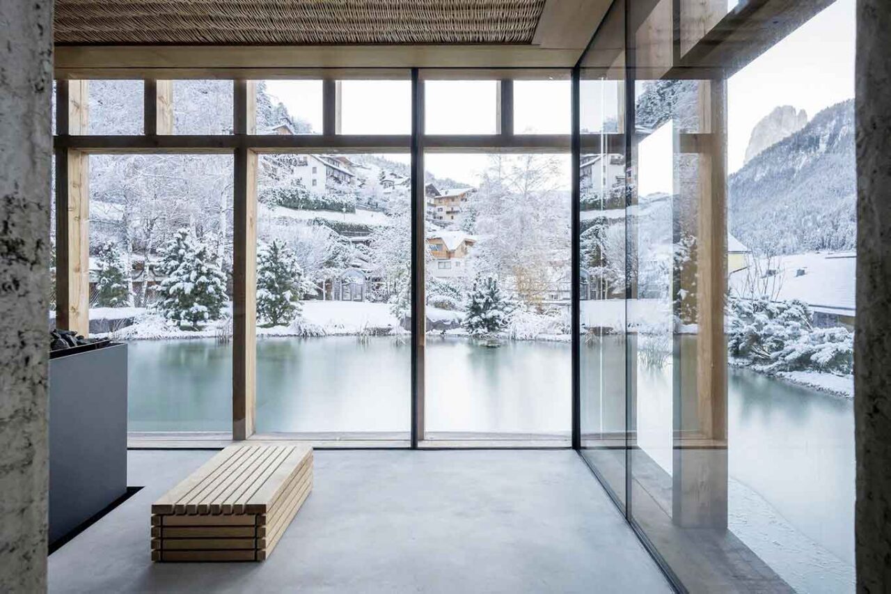 L’Hotel de Len è il mondo contemporaneo delle Dolomiti. Aperto nel 2022, è stato progettato dallo studio Gris+Dainese di Venezia come modello di benessere architettonico. Il nome de Len, che significa in ladino “di legno”, e il legno che predomina nel progetto con ambienti caldi e accoglienti. Una spa panoramica affacciata sulla vallata, tecnologie avanzate per il benessere, attività outdoor arricchiscono l’offerta di ospitalità.