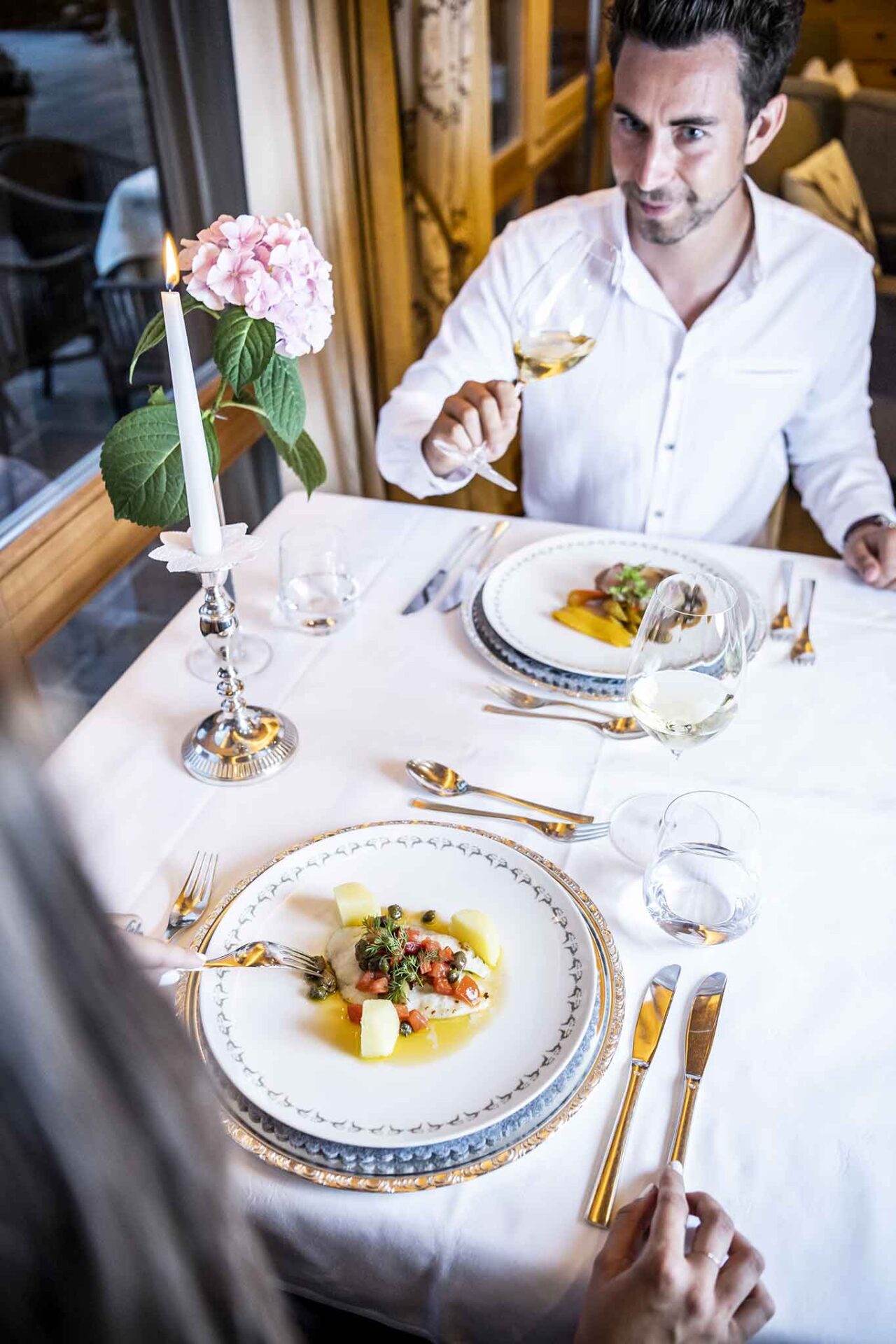 Aman Rosa Alpina è l’evoluzione dello storico albergo Rosa Alpina verso un lusso più contemporaneo con un design senza tempo abbinato ai massimi standard di servizio. I proprietari Hugo e Ursula Pizzinini hanno abbracciato la visione globale di Aman preservando l’autenticità e lo spirito della regione. L’architetto Jean-Michel Ghaty ha valorizzato la maestria artigianale locale e l’uso di materiali naturali. Spa, piscine, palestra, sala cinema invitano a rimanere in hotel. La parte dining si divide in varie zone. Alla guida della cucina, lo chef Gianluca Salvato.