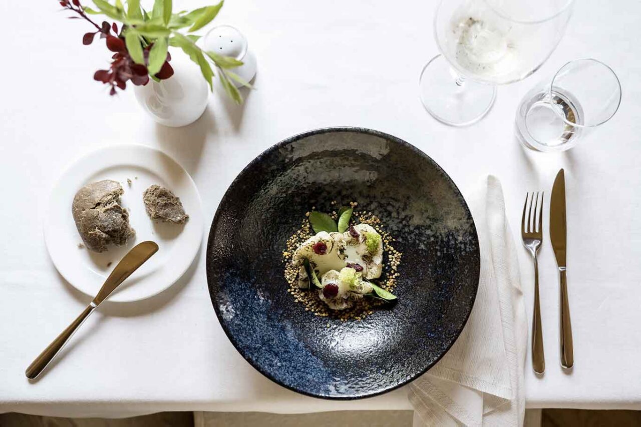 Alla guida della cucina, lo chef Armin Elezi che ha sviluppato una passione particolare per le antiche tecniche di fermentazione e per la cucina creativa. Il menu degustazione Profumi d’autunno prevede 4 portate (benvenuto dello chef; mousse al Blu di Grotta ed uva marinata; tagliatelle ai funghi di montagna; anatra ripiena in salsa Blauburgunder; gelato ai porcini).