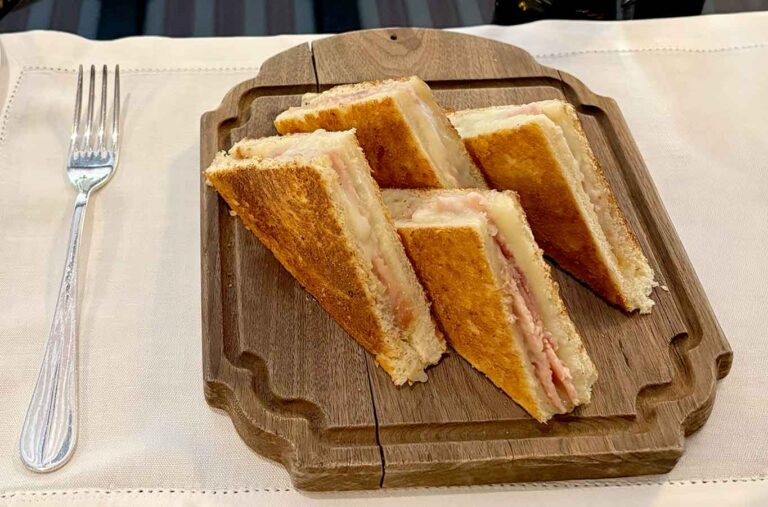In un cortile della vecchia Milano, tra Porta Genova e la Basilica di Sant’Ambrogio, si nasconde la confetteria più antica d’Italia, fondata a Genova nel 1780. Da Romanengo 1780 a Milano si va soprattutto per l’ampia selezione di tè e infusi e per le cioccolate gourmet, ma anche il toast merita una menzione speciale. Suddiviso in quattro triangoli e tostato alla perfezione, si riconosce per l’inconfondibile “griglia” impressa sul pane croccante. All’interno l’abbondante farcitura incontra le note fresche della maionese ai boccioli di rosa, che aggiunge una nota inaspettata e raffinata.