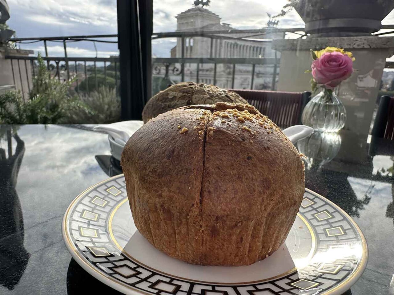 Insieme al pane fatto in casa con grani siciliani di Natale Giunta servono un panettoncino cacio e pepe, lussuria di carboidrato. In accompagnamento un olio siciliano.