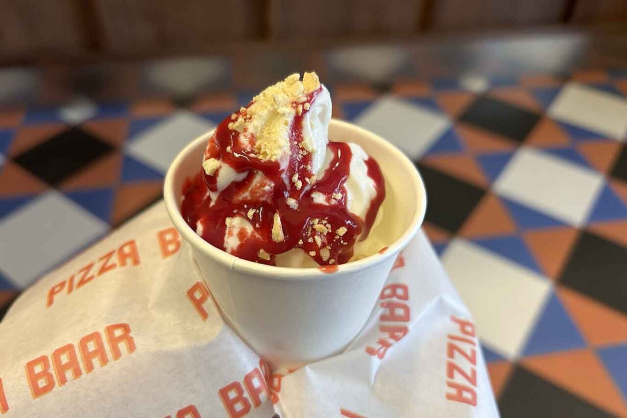 Il soft ice di Pizza Baar è un’estensione naturale della visione di Marco Radicioni applicata a un formato popolare e quotidiano. L’idea è quella di lavorare su un prodotto semplice nella somministrazione, spingendolo fuori dai suoi codici abituali. L’aria è presente, come nella tradizione del soft ice cream, ma non in maniera esasperata.