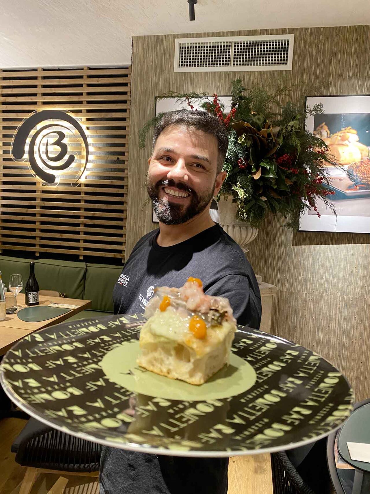 Percorso limpido, cristallino in una sala piena di avventori. Raffaele Bonetta è un fuoriclasse anche se al suo vecchio locale a Pozzuoli ha incespicato nelle Qualificazioni del Campionato della Pizza. Dove però ha portato sull’altare un maritozzo divino. Diciamo che il sacerdote degli impasti ora ha il suo vescovado.