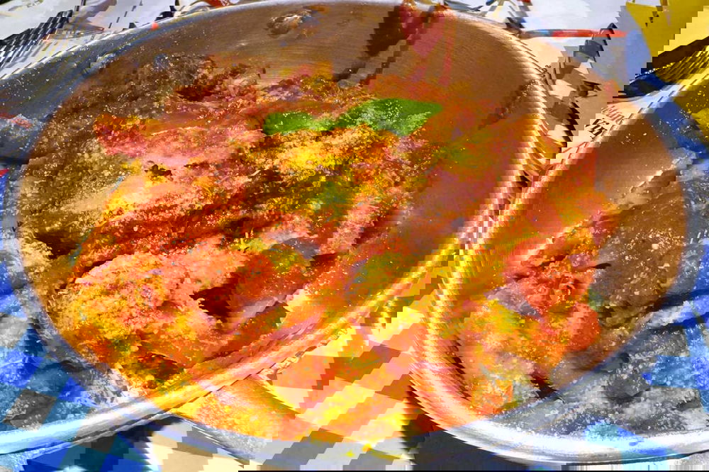 Derubricando subito la chiave di lettura marketing che si ritrova giusto nella presentazione del tianiello, ovvero la padella in cui sono mantecate le paste. E che diventa utile strumento di memoria casalinga e di presentazione di una porzione da camionista (a 15 €). Potete dividerla per due persone senza incorrere in delitto di pauperismo. E poi avrete spazio per un altro rifornimento di carboidrati scegliendo una delle pizze margherita. O se proprio non ne potete fare a meno, di una pizza all’ananas come pre dessert.