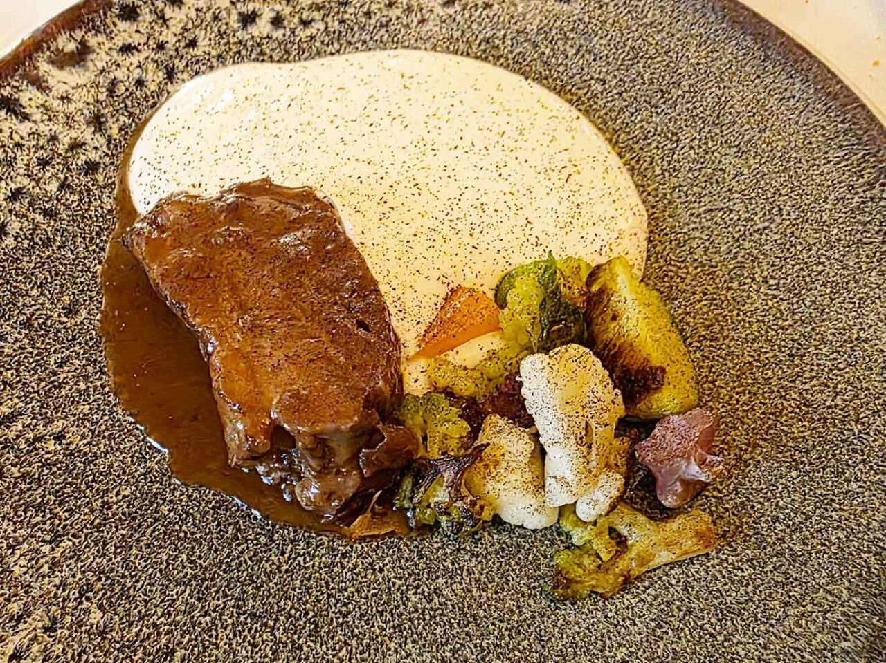 Guancia di vitello brasata e soffice di patate (28 euro).