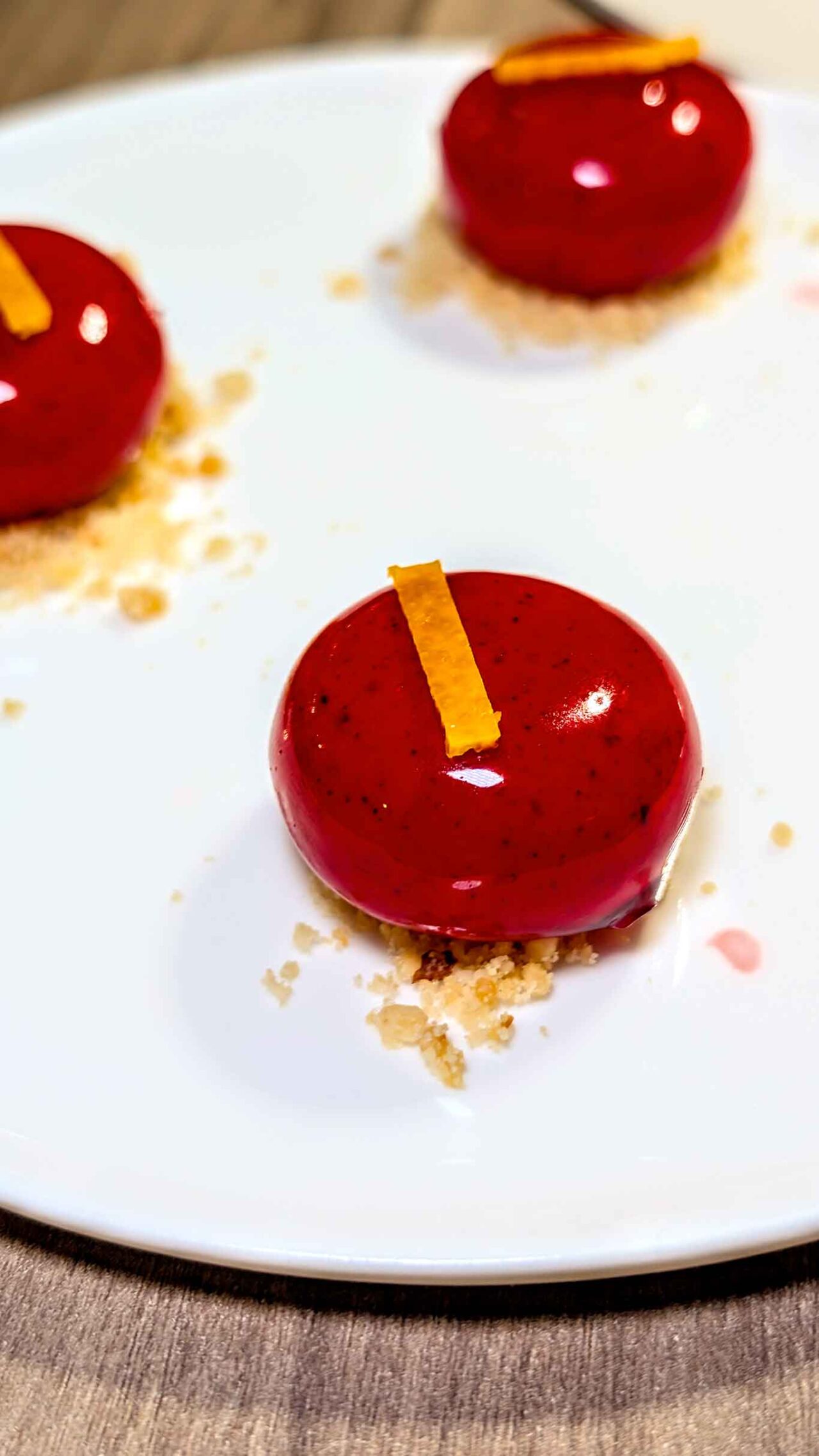 Il dessert promette un’assoluta leggerezza tattile mantenendo la parola data grazie a un pan brioche impalpabile, arricchito dall’amarezza austera del cioccolato fondente. Una vibrante marmellata di arance amare colte direttamente dai rami secolari dell’aranceto settecentesco completa l’opera.