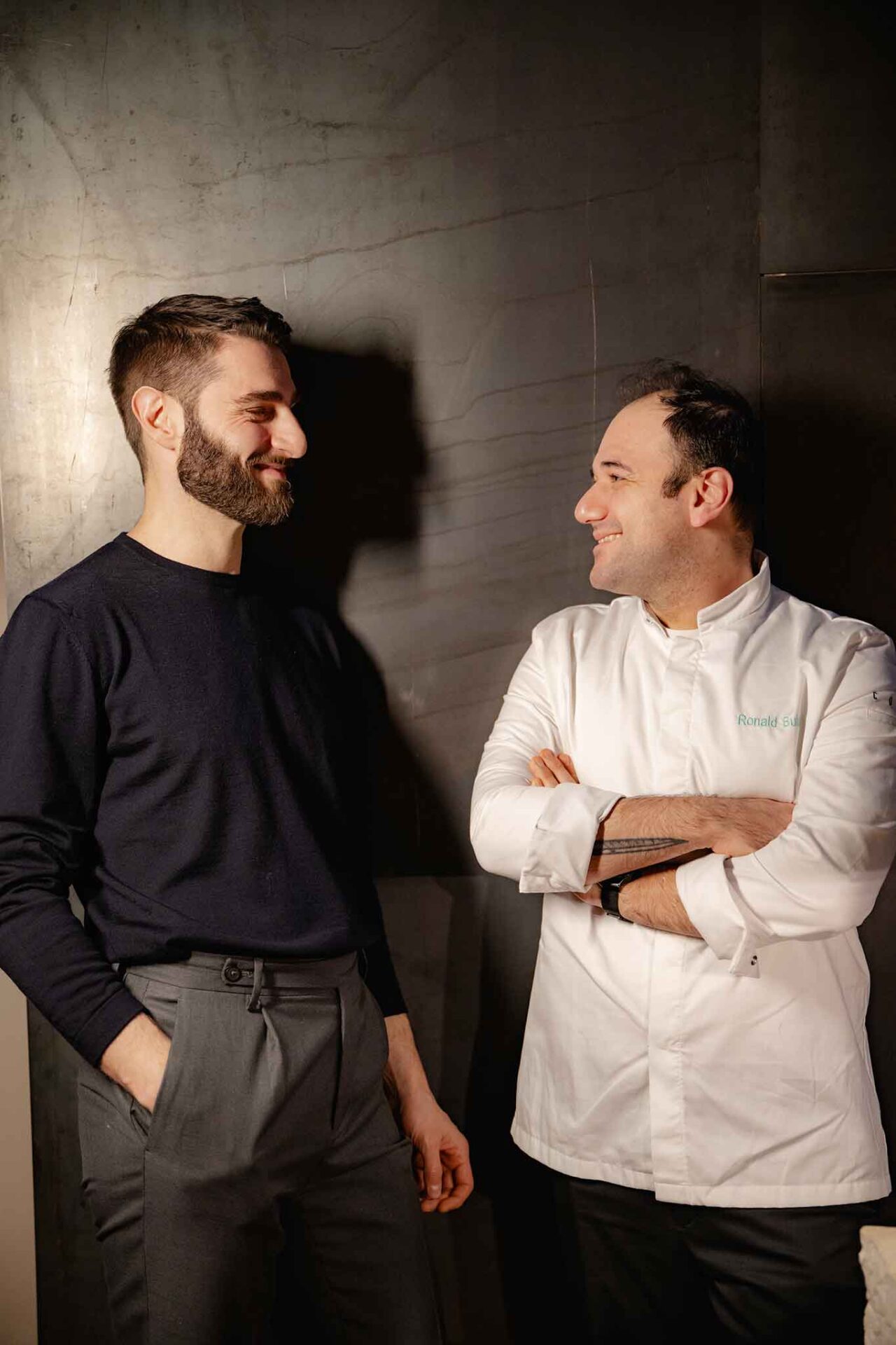 È un posto affascinante, Coro, un locale modernissimo in antiche mura al centro della città. Un luogo di linee essenziali, luci mirate, angoli e ombre strutturati per creare effetto, sogno, sipario. Unico ristorante italiano tra i 16 locali finalisti del Prix Versailles 2025, premio internazionale per l’architettura nella ristorazione.