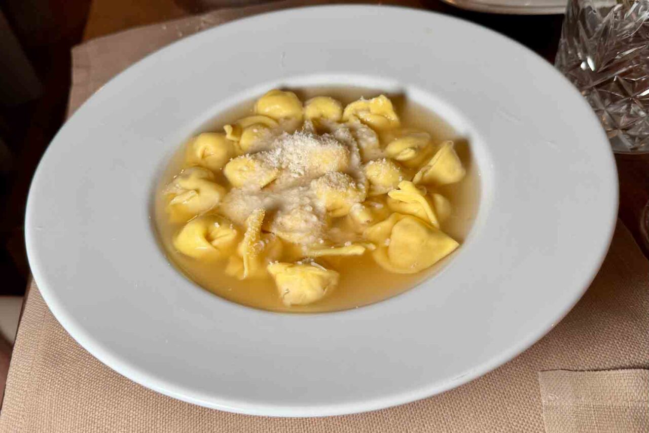 I cappelletti in brodo non sono solo comfort food. Sono callosi e sinceri in un brodo leggero. Serviti in zuppiera in una porzione più che abbondante (14 euro). Accompagnati dal parmigiano di ordinanza.