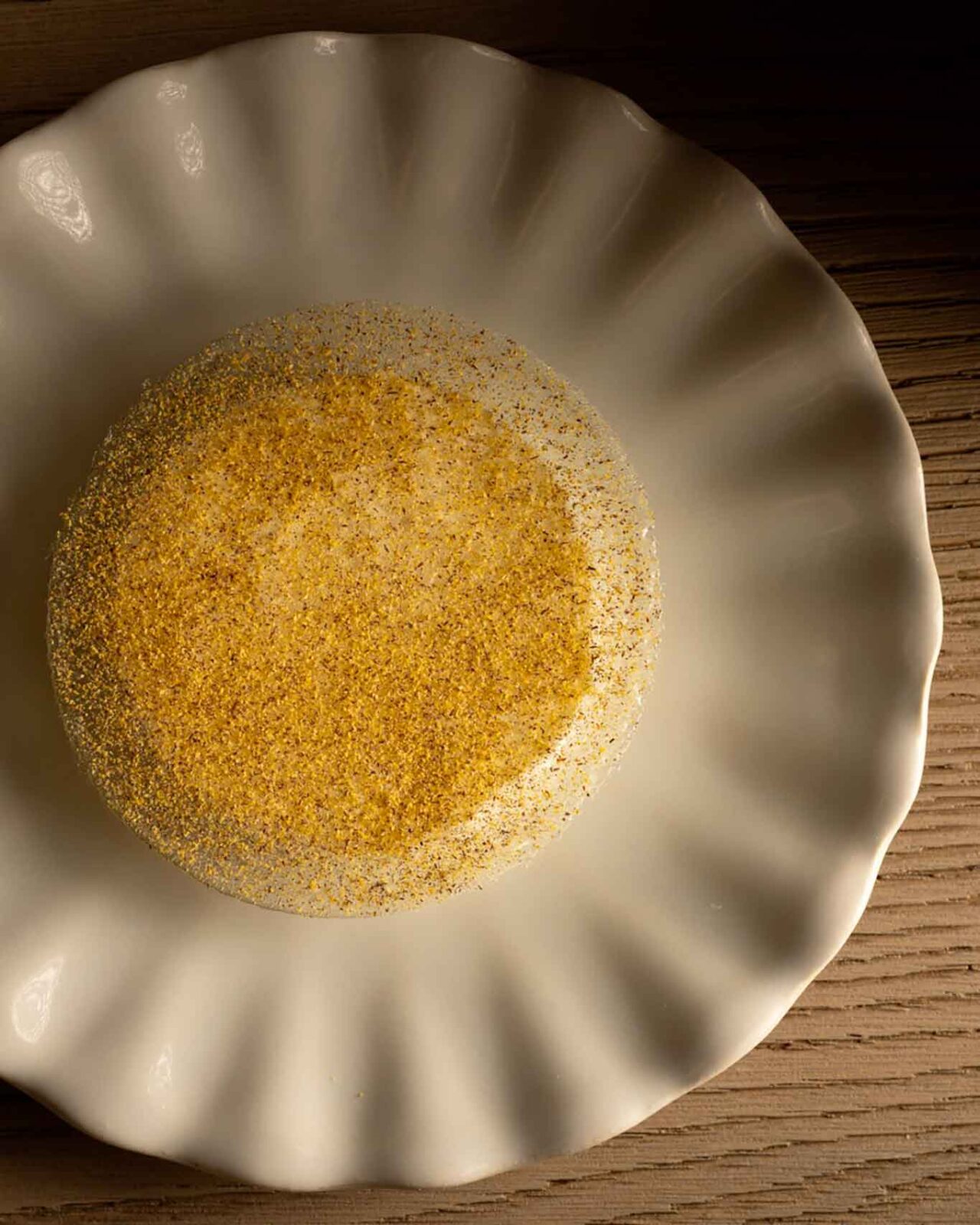 Per tutto il percorso va sottolineato come sia apprezzabile che il senso del tatto e dell’udito non risultino mai trascurati. Ad esempio, la sonorità che si produce inserendo il cucchiaio per pescare la granita di gelso offre un piacere ulteriore che accompagna il gusto.