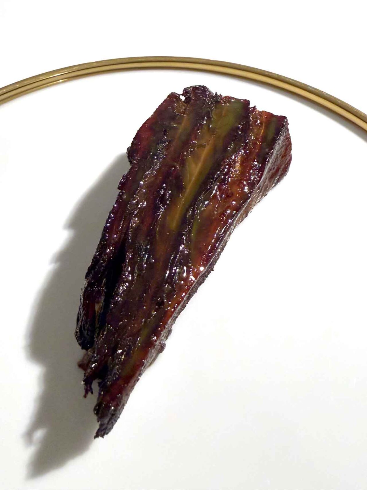 Scarola arrosto. La texture del vegetale completamente stravolta e di grande bontà (50 euro in carta).