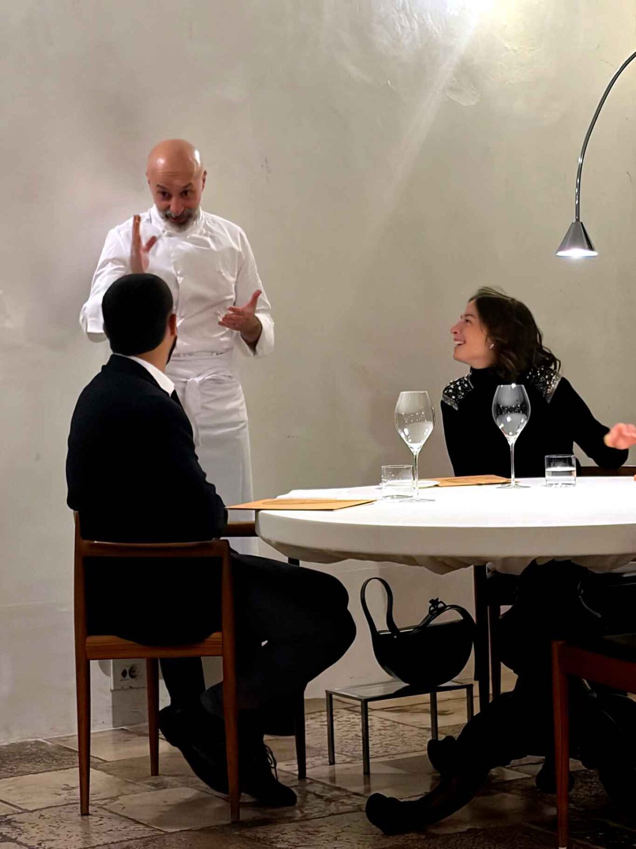 E questa sua ricerca segue oggi un doppio binario: da una parte, il Reale, il ristorante che porta avanti grazie al grande prezioso lavoro anche di Cristiana Romito e dei ragazzi in sala e nella struttura. Oggi abbiamo trovato un meraviglioso Maldotti a sostituire il bravissimo Sinesi in sala, diremmo con un sorriso in più e con la medesima professionalità.