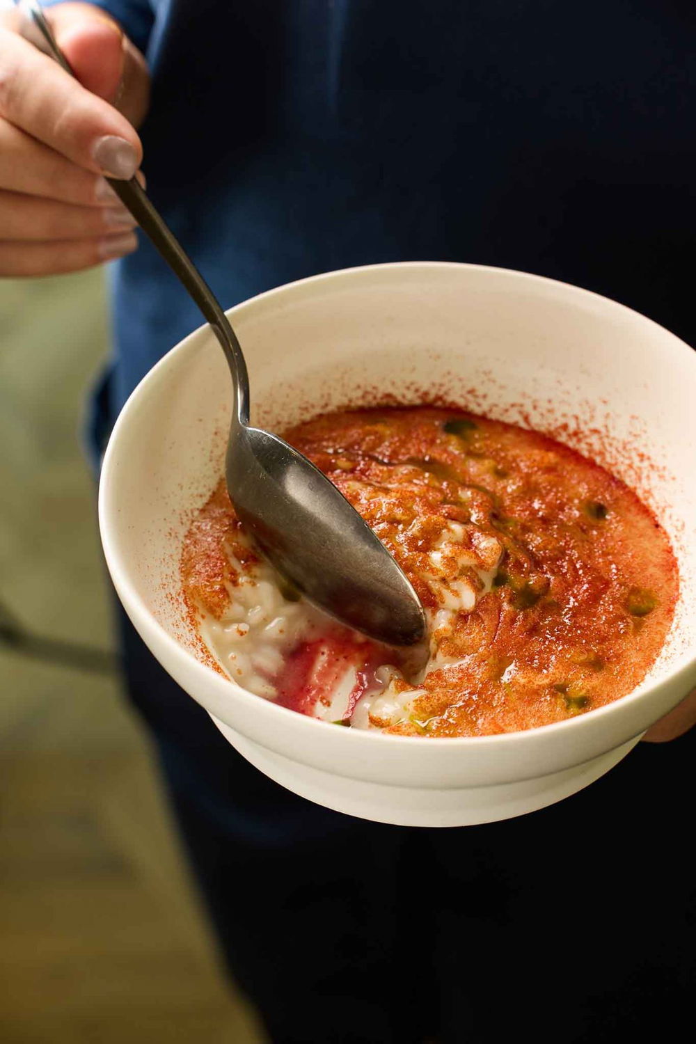 Bollito di astice, sedano, passion fruit e fonduta di peperoni