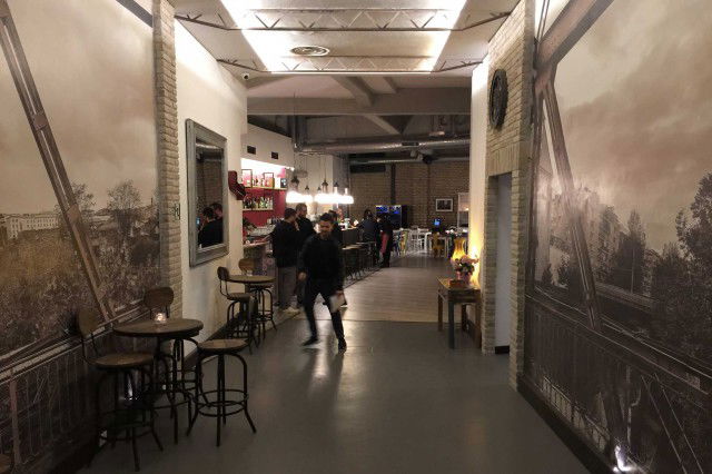 Un ex garage che è stato rivisitato per ospitare 100 persone e offrire una sequenza con bar-aperitivo, cucina e pizzeria.