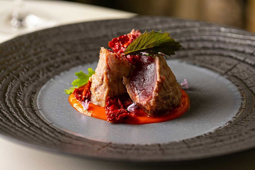 Chiudendo gli occhi sembra di mangiare una bistecca, per la consistenza delle carni e per i succhi pieni di sapore che sprigionano sotto i denti. L’agrume dona un’acidità dolce e fa da cassa di risonanza al piatto.