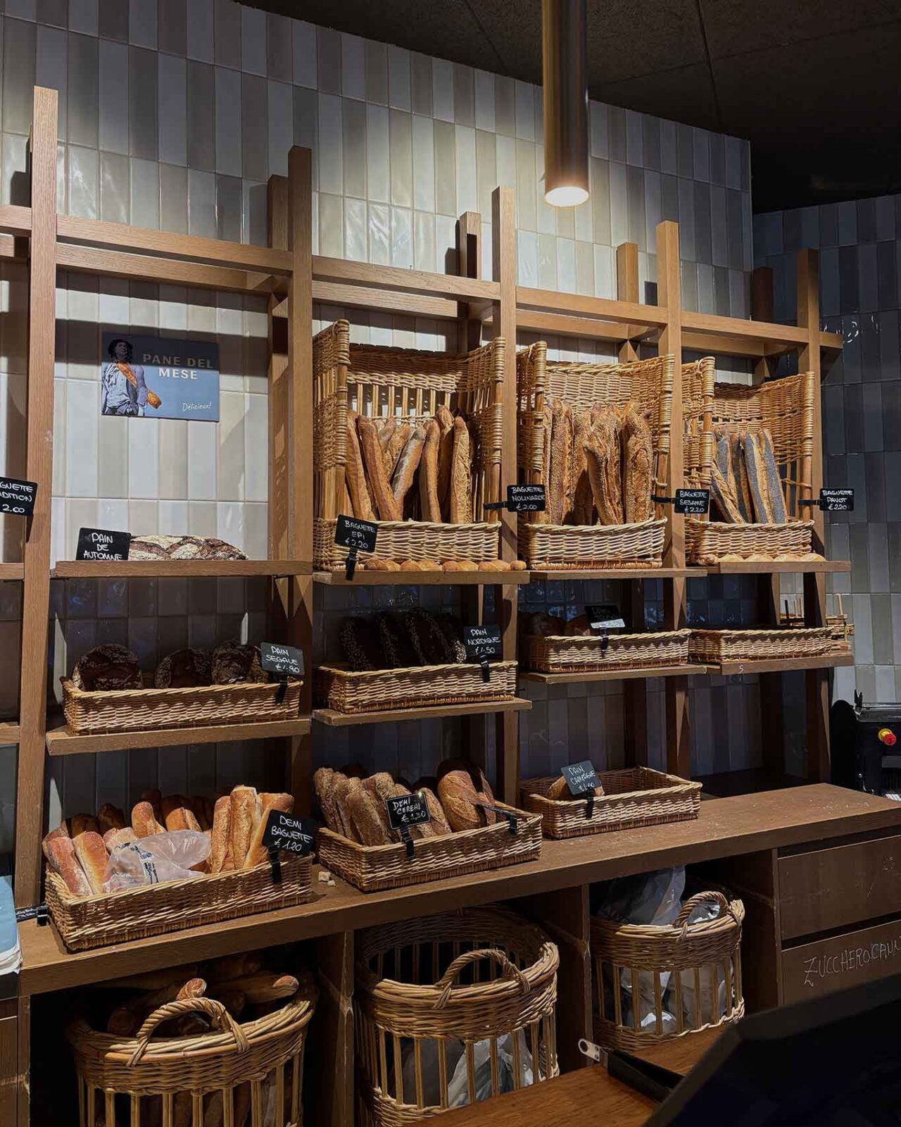 Nata da una costola di Via Stampa, questa panetteria con caffetteria è un progetto ambizioso che punta a diventare un laboratorio di quartiere. Non sono previste prenotazioni: si accede solo in modalità walk-in e senza servizio al tavolo. si entra, si ordina e se si desidera fermarsi ci si accomoda. Il locale, dalle grandi vetrate, si affaccia su Piazza Vetra e sull’abside di San Lorenzo. L’ambiente interno porta la firma di Officina Magisafi, studio bergamasco che ha progettato uno spazio funzionale e contemporaneo. Al centro della sala, un lungo tavolo condiviso dialoga da un lato con tavolini più piccoli e dall’altro con il bancone del pane. “Il pane è al centro di quello che facciamo, ma non è l’unica cosa”, recita il manifesto sul sito della bakery.